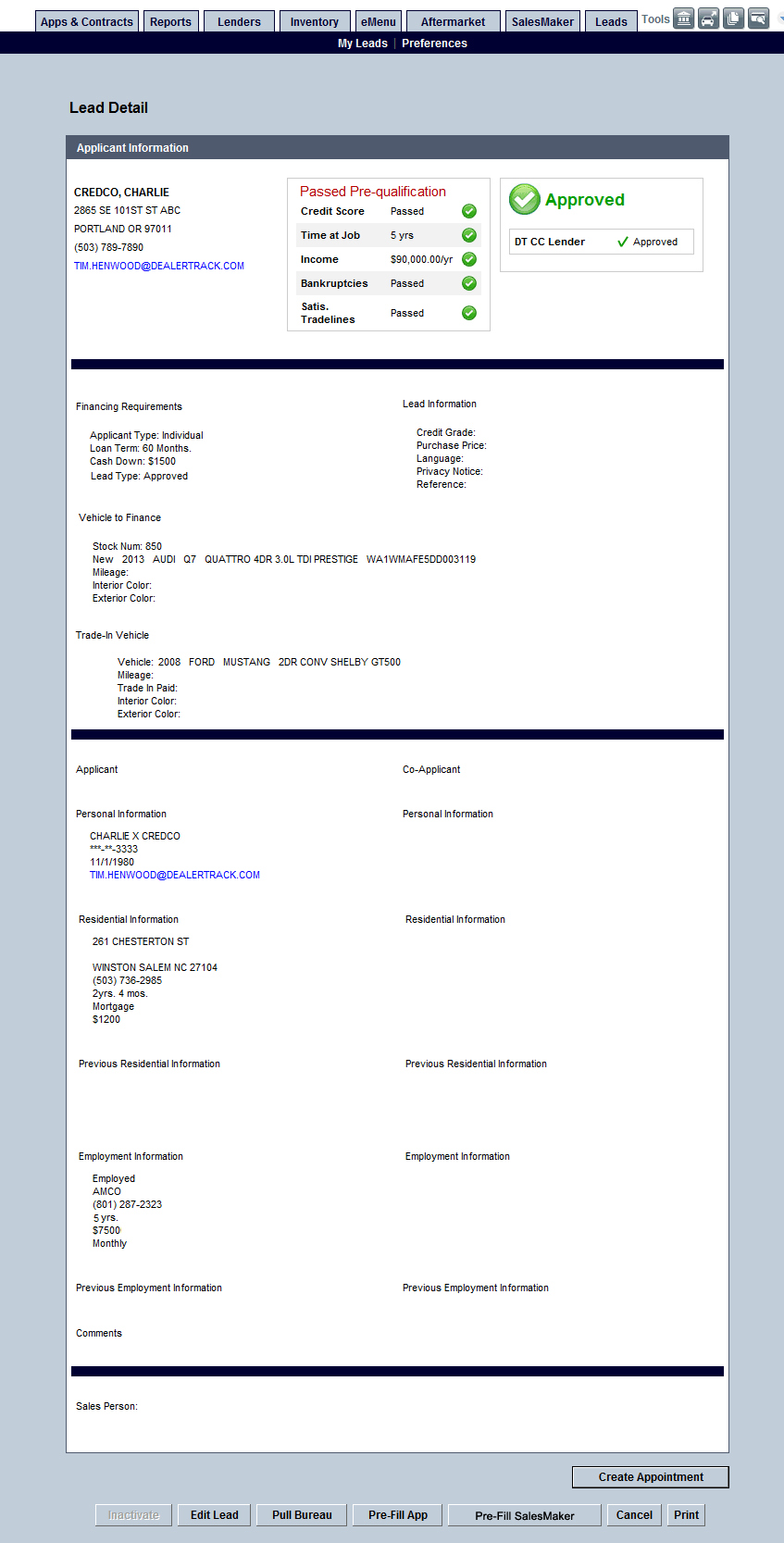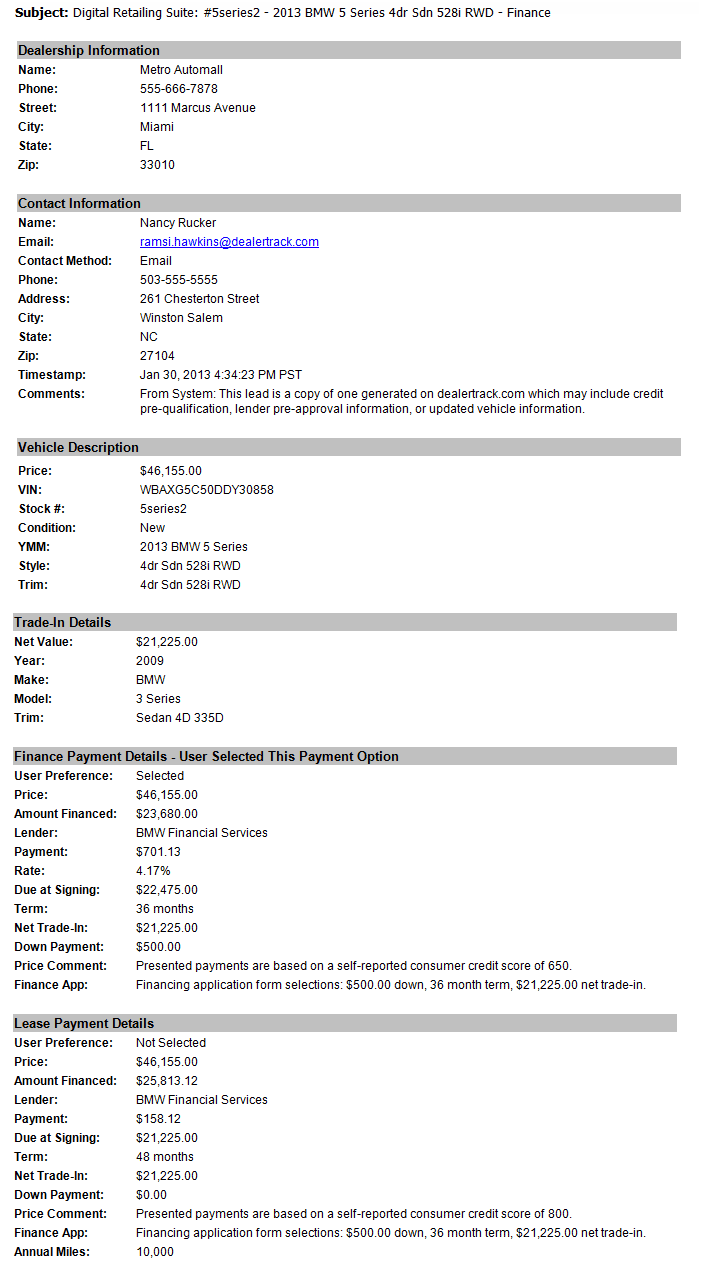 Here are screenshots of Dealertrack.com settings. Click on a thumbnail to view an enlarged screenshot.
